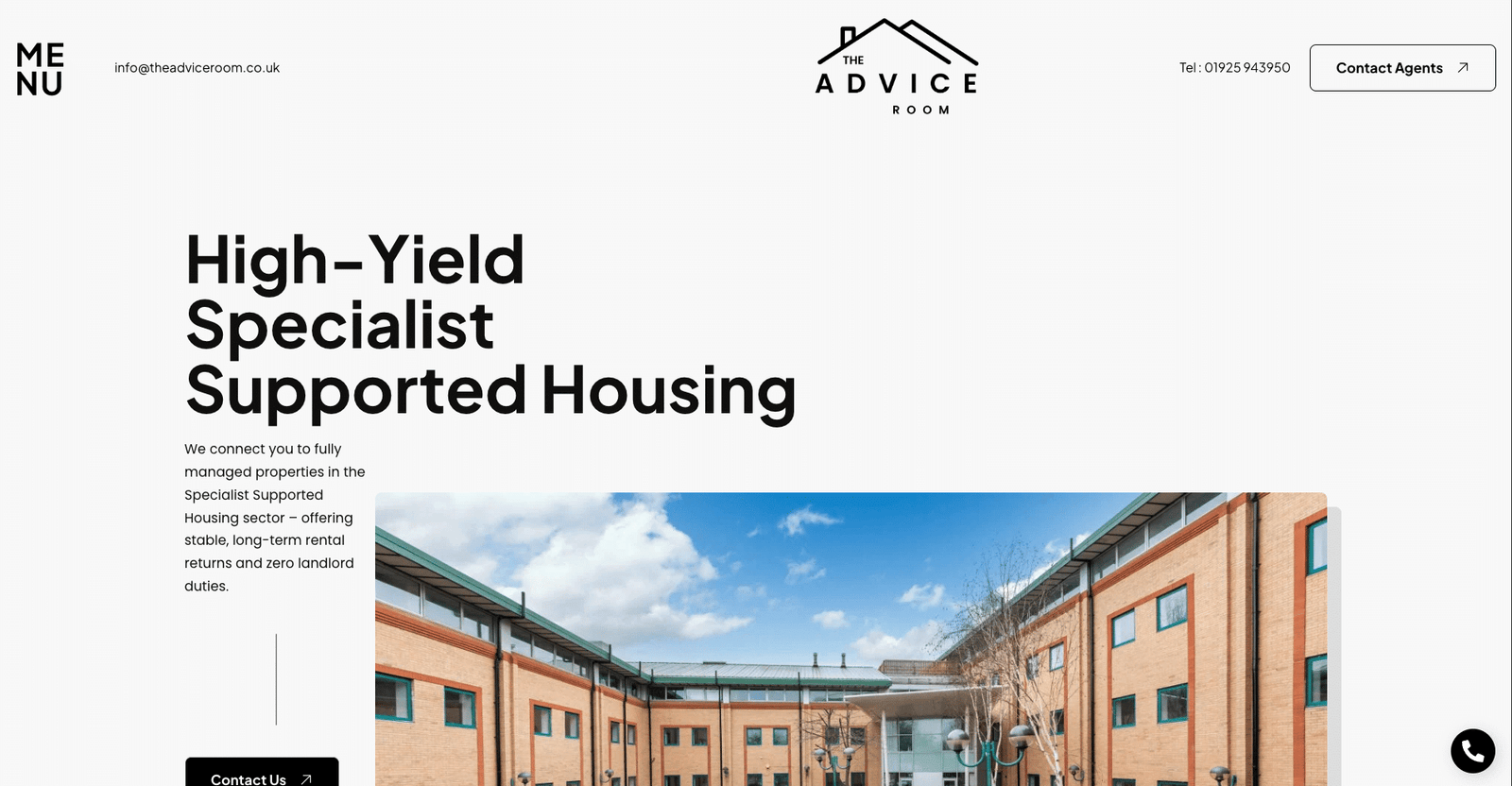 The Advice Room is a property-focused business specialising in high-yield, specialist supported housing opportunities across the UK. Their offering is highly attractive to the right audience, but relies on being seen by investors who are actively looking for property opportunities – not casual browsers.